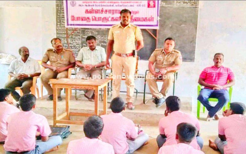 கிருஷ்ணகிரி: அரசு ஆண்கள் மேல்நிலைப்பள்ளியில் போலீசார் சார்பில் போதை பொருள் தடுப்பு விழிப்புனார்ர்வு கருத்தரங்கு நடந்தது. உதவி தலைமை ஆசிரியர் பவுன்ராஜ் வரவேற்றார். தலைமை ஆசிரியர் வேந்தன் தலைமை தாங்கினார். சிறப்பு விருந்தினராக போலீஸ் சப்-இன்ஸ்பெக்டர் பாலகிருஷ்ணான் கலந்து கொண்டு பேசினார். மாணவர்களுக்கு கட்டுரை போட்டிகள் நடத்தப்பட்டன. இதில் வெற்றி பெற்ற மாணவர்களுக்கு பரிசு வழங்கப்பட்டன. இதில் உள்பட பலர் கலந்து கொண்டனர்.