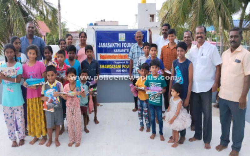 விருதுநகர் :  விருதுநகர் மாவட்டம், காரியாபட்டி ஜனசக்தி பவுண்டேசன் சார்பாக பள்ளிக் குழந்தைகளுக்கு எழுதுபொருட்கள் வழங்கும் நிகழ்ச்சி நடைபெற்றது. காரியாபட்டி வழக்கறிஞர் சங்க துணைச்செயலாளர் செந்தில்குமார் தலைமை வகித்தார். வேளாண்மை ஆத்மா திட்டத் தலைவர் கந்தசாமி முன்னிலை வகித்தார். ஜனசக்தி பவுண்டேசன் நிறுவனர் சிவக்குமார் வரவேற்றார். நிகழ்ச்சியில், பள்ளிக் குழந்தைகளுக்கு நோட்டு புத்தகம் மற்றும் கல்வி சாதனங்கள், எழுதுபொருட்கள் வழங்கப்பட்டது. நிகழ்ச்சியில், பவுண்டேசன் திட்ட அலுவலர் ராஜு மென் பொறியாளாளர் சிவசங்கரன், கருப்பசாமி , சந்துரு உட்பட பலர் கலந்துகொண்டனர். பவுண்டேசன் அறங்காவலர் சாவித்திரி நன்றி கூறினார்.