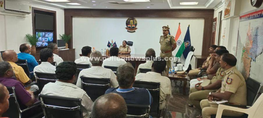 இராணிப்பேட்டை : (12.09.2022),- ம் தேதி மாலை சுமார் 05.00 மணியளவில் இராணிப்பேட்டை மாவட்ட காவல் அலுவலகத்தில் மாவட்ட காவல் கண்காணிப்பாளர் மருத்துவர் தீபா. சத்யன் இ.கா.ப, அவர்கள் தலைமையில், இராணிப்பேட்டை மாவட்டத்தில் அரசால் தடை செய்யப்பட்ட குட்கா மற்றும் கஞ்சா விற்பனையை முற்றிலும் ஒழிக்கும் பொருட்டு மாவட்டத்தில் உள்ள அனைத்து வியாபாரிகள் சங்கத்தினருடன் ஆலோசனை கூட்டம் நடைபெற்றது. இக்கூட்டத்தில் பேசிய மாவட்ட காவல் கண்காணிப்பாளர் மருத்துவர் தீபா. சத்யா இ.கா.ப அவர்கள் அரசால் தடை செய்யப்பட்ட குட்கா மற்றும் கஞ்சாவை எவரேனும் விற்பனை செய்தாலோ அல்லது பதுக்கி வைத்தாலோ அவர்கள் மீது சட்டப்படி கடுமையான நடவடிக்கை எடுக்கப்பட்டு, கடைகளுக்கு சீல் வைத்து அவர்களை குண்டர் தடுப்பு காவல் சட்டத்தின் கீழ் சிறையில் அடைக்க நடவடிக்கை மேற்கொள்ளப்படும் என்றும், அவர்களை வங்கி கணக்கு முடக்கம் செய்யப்பட்டு அவர்களது சொத்து மற்றும் வங்கி கணக்கில் உள்ள பணம் முழுவதும் அரசு உடமையாக்கப்படும் என்றும், மேலும் இந்த வருடம் மொத்தம் 428 குட்கா வழக்குகளும் 80 கஞ்சா வழக்குகளும் பதிவு செய்யப்பட்டு 517 நபர்களை கைது செய்து நடவடிக்கை மேற்கொள்ளப்பட்டது, அதில் 18 நபர்கள் குண்டர் தடுப்பு காவல் சட்டத்தின் படி சிறையில் அடைக்கப்பட்டுள்ளனர்.