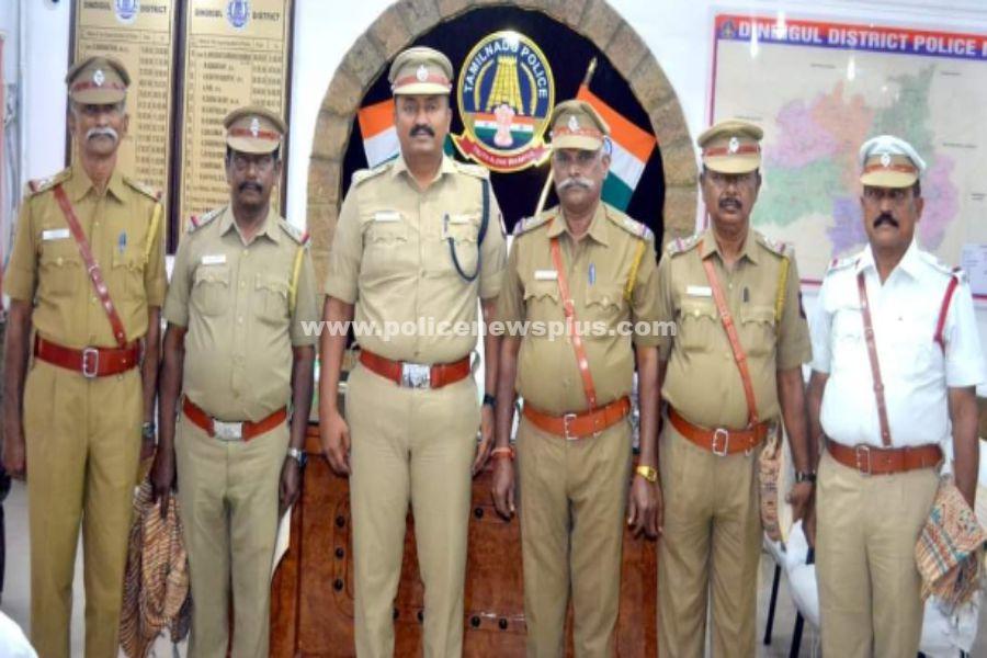 திண்டுக்கல் :  திண்டுக்கல் மாவட்ட காவல்துறையில் பணிபுரிந்து (28.02.2023) ம்தேதியுடன் பணி ஓய்வு பெற உள்ள சத்திரப்பட்டி காவல் நிலைய சார்பு ஆய்வாளர் திரு.மகுடீஸ்வரன், பழனி தாலுகா காவல் நிலைய சிறப்பு சார்பு ஆய்வாளர் திரு.ராஜ்குமார், திண்டுக்கல் நகர் மேற்கு காவல் நிலைய சிறப்பு சார்பு ஆய்வாளர் திரு.லட்சுமணன், மாவட்ட குற்ற பதிவேடு கூடம் சிறப்பு சார்பு ஆய்வாளர் திரு.ஆல்பர்ட் ராய், நில அபகரிப்பு பிரிவு சிறப்பு சார்பு ஆய்வாளர் திரு.பாலகிருஷ்ணன் ஆகியோருக்கு மாவட்ட காவல் கண்காணிப்பாளர் திரு.பாஸ்கரன் அவர்கள் பொன்னாடை அணிவித்து பணி பாராட்டு சான்றிதழ் வழங்கி பாராட்டினார்கள்.