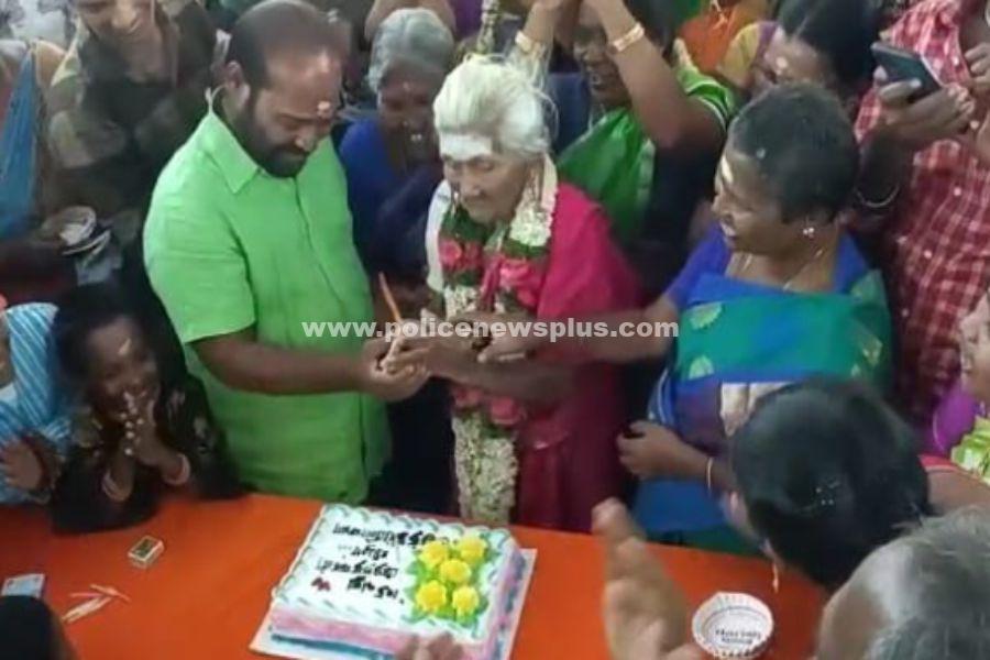 கேக் வெட்டி கொண்டாடிய 105 வயது மூதாட்டி