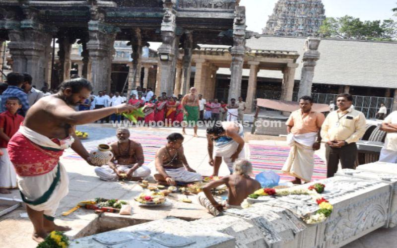 மதுரை : மதுரை மீனாட்சியம்மன் திருக்கோயிலில், உள்ள வீரவசந்தராயர் மண்டபத்தின் புனரமைப்பு பணியான தூண்கள் அமைக்கும் பணியின் பூமி பூஜையில் , மதுரை மாவட்ட ஆட்சித்தலைவர் அனிஷ்சேகர், மாநகராட்சி மேயர் இந்துராணி, அருள்மிகு மீனாட்சி சுந்தரேஷ்வரர் திருக்கோயில் தக்கார் கருமுத்து தி.கண்ணன், துணை ஆணையர் அருணாச்சலம் ஆகியோர் கலந்து கொண்டனர்.