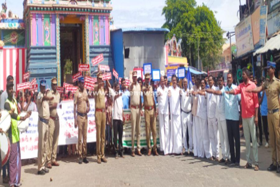 மதுரை : சோழவந்தானில் காவல்துறை அரசன் சண்முகனார் அரசு மேல்நிலைப்பள்ளி திருவேடகம் விவேகானந்த கல்லூரி சோழவந்தான் அரசு பெண்கள் மேல்நிலைப்பள்ளி ஆகியோர் சர்வதேச போதை தடுப்பு தினத்தை முன்னிட்டு ஊர்வலமாக வந்து உறுதிமொழி எடுத்துக் கொண்டனர். இந்நிகழ்ச்சிக்கு சமயநல்லூர் துணை சூப்பிரண்ட் பாலசுந்தரம் நிகழ்ச்சிக்கு தலைமை ஏற்று மாணவ மாணவிகள் ஊர்வலத்தை கொடி அசைத்து தொடக்கி வைத்து உறுதிமொழி வாசித்தார். ஊர்வலம் மாரியம்மன் கோவில் சன்னதி தெரு பெரிய கடை வீதி தெற்கு ரத வீதி மேலரது வீதி வடக்கு வீதி வழியாக ஊர்வலமாக வந்து புறப்பட்ட இடத்திற்கு வந்து சேர்ந்தனர். முன்னதாக போலீஸ் இன்ஸ்பெக்டர் சிவபாலன் வரவேற்றார். போதை தடுப்பு விழிப்புணர் குறித்து பேரூராட்சி தலைவர் ஜெயராமன் மாவட்ட திட்டக்குழு உறுப்பினர் வக்கீல் சத்ய பிரகாஷ் சிறப்பு சப்-இன்ஸ்பெக்டர் முத்து தலைமை காவலர்கள் மாரியப்பன், பெரியமாயன், உக்கர பாண்டியன், ஆகியோர் பேசினார்கள். இதில் விவேகானந்தா கல்லூரி முதல்வர் வெங்கடேசன் அரசன் சண்முகனார் அரசு மேல்நிலைப்பள்ளி தலைமை ஆசிரியர் சரவணன் அரசு பெண்கள் மேல்நிலைப்பள்ளி தலைமை ஆசிரியர் தீபா உட்பட மாணவ மாணவிகள் ஆசிரியர் ஆசிரியர்கள் மற்றும் காவல் துறையினர் கலந்து கொண்டனர். சப் இன்ஸ்பெக்டர் சேகர் நன்றி கூறினார்.