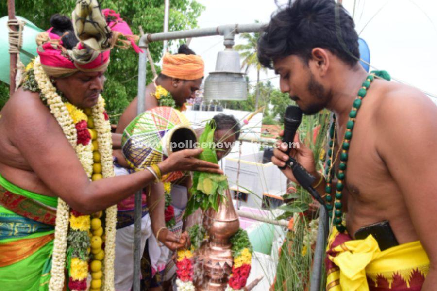 சிவாச்சாரியார்கள், வேத மந்திரங்கள் முழங்க கோபுர கலசத்தில் புனித நீர் ஊற்றி கும்பாபிஷேகம் செய்தனர். அப்போது, வானத்தில் கருடன் கூட்டமாக வட்டமிட்டது .