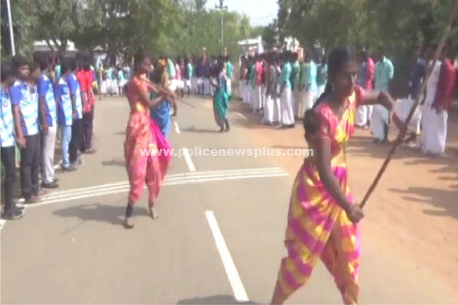 விருதுநகர் :  விருதுநகர் மாவட்டம், சிவகாசி அய்யநாடார் ஜானகியம்மாள் கல்லூரியில் தைப் பொங்கல் திருவிழாவை ‘தமிழர் மரபு திருவிழா’ என்ற பெயரில் கோலாகலமாக கொண்டாடினர். தைப்பொங்கல் விழா நிகழ்ச்சியில் தமிழர்களின் பாரம்பரியம், பண்பாடு, பாரம்பரிய வீர விளையாட்டு உள்ளிட்டவைகளுடன், ஜல்லிக்கட்டு காளைகள், தப்பாட்டம், கரகாட்டம், மயிலாட்டம், ஒயிலாட்டம், சிலம்பாட்டம், தேவராட்டம், கருப்பசாமியாட்டம், தீப்பந்த சாகசம், பொய்க்கால் குதிரை, சுருள் வால் வீச்சு உள்ளிட்ட பாரம்பரிய வீர விளையாட்டுகள், நடனங்கள், மாட்டு வண்டி, நுங்கு வண்டி, பம்பரம் விளையாட்டு உள்ளிட்ட பழமையான சிறுவர்கள் விளையாட்டுகளும் இடம்பிடித்திருந்தன. கல்லூரி மாணவிகளின் கைவண்ணத்தில் பெங்கல் வைத்து படையலிடப்பட்டது. மேலும் பல்வேறு விளையாட்டுப் போட்டிகள் நடைபெற்றன. தைப்பொங்கல் விழா நிகழ்ச்சியில் கல்லூரி மாணவ, மாணவிகள் ஆர்வமுடனும், உற்சாகத்துடன் கலந்து கொண்டு பொங்கலோ பொங்கல் என்று உற்சாகமாக கோஷமிட்டு மகிழ்ந்தனர்.