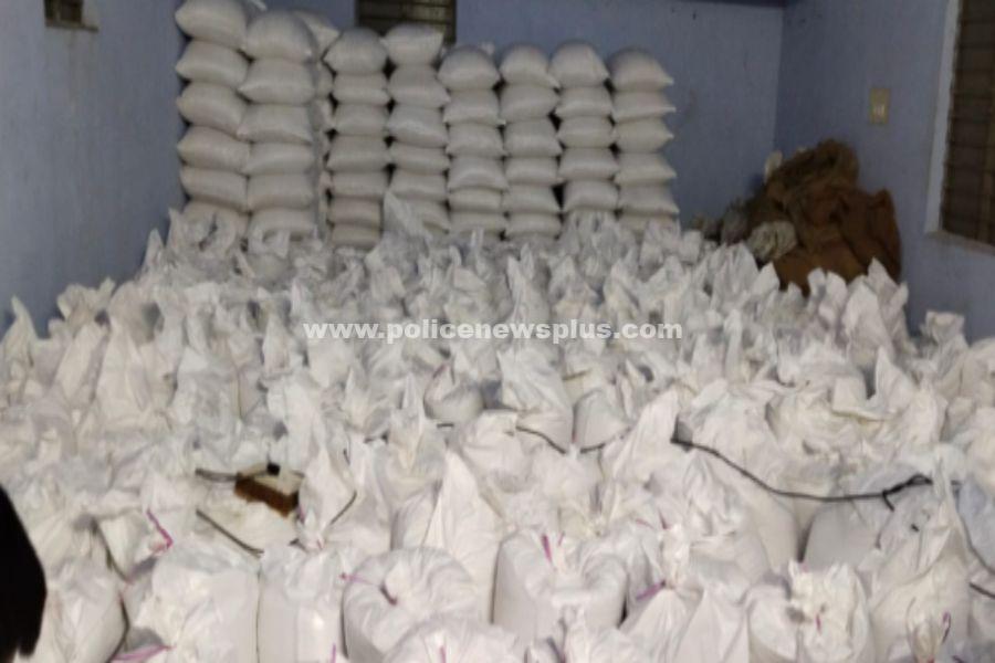 அங்கு இருந்த கிடங்கில் ரேஷன் அரிசி மூடைகளாக கட்டி அடுக்கி வைக்கப் பட்டிருந்தது.