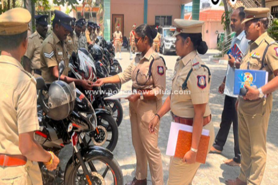 இராணிப்பேட்டை : (03.04.2023), காலை சுமார் 10.00 மணியளவில் இராணிப்பேட்டை மாவட்ட காவல் அலுவலகத்தில் மாவட்ட காவல் கண்காணிப்பாளர் செல்வி.D.V.கிரண் சுருதி இ.கா.ப., அவர்கள் மாவட்டத்தில் ரோந்து பணிக்காக வழங்கப்பட்டுள்ள புதிய 12 இரு சக்கர வாகனங்களை ரோந்து காவலர்களிடம் வழங்கினார்கள். இந்நிகழ்ச்சியில் மாவட்ட கூடுதல் காவல் கண்காணிப்பாளர் (தலைமையிடம்)திரு. விசுவேசுவரய்யா, காவல் அதிகாரிகள் மற்றும் காவல் ஆளிநர்கள் கலந்து கொண்டனர்.