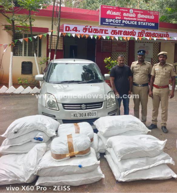 கிருஷ்ணகிரி : கிருஷ்ணகிரி மாவட்டம் , ஓசூர் சிப்காட் காவல் நிலைய எல்லைக்கு உட்பட்ட ஜூஜூவாடி வாகன சோதனை சாவடியில் காவல் துறையினர் சோதனையில் ஈடுபட்டனர். அப்போது அவ்வழியாக வந்த கார்ரை சோதனை செய்து போது அந்த வாகனத்தில் தமிழக அரசால் தடை செய்யப்பட்ட 358.350 கிலோ 190500 Rs மதிப்புல்ல குட்கா பொருள் கடத்தி வந்தது தெரியவந்த இதை கடத்தி வந்தb 1.அருள் முருகன் திருநெல்வேலி மாவட்டத்தைச் சேர்ந்தவர் என்பது விசாரணையில் தெரியவந்தது. மேலும் அவரிடம் இருந்து 190500 விலை மதிப்புள்ள குட்கா பொருட்களை மற்றும் நான்கு சக்கர வாகனத்தையும் சிப்காட் காவல் துறையினர் பறிமுதல் செய்தனர். மேலும் அருள் முருகன் மீது வழக்கு பதிவு செய்து நீதிமன்றத்தில் ஒப்படைத்தனர்.