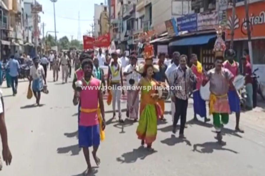 மதுரை : தமிழகம் முழுவதும் போதைப்பொருட்களை தடுக்கும் விதமாக அனைத்து பகுதிகளிலும் காவல்துறையினர்கள் சார்பில் போதை விழிப்புணர்வு பற்றி ஊர்வலம் நடைபெற்று வருகிறது. இதன் ஒரு பகுதியாக, மதுரை மாவட்டம், உசிலம்பட்டி போக்குவரத்து பணிமனை முன்பு மதுவை ஒழிப்பது குறித்தும் போதைப்பொருட்களில் இருந்து தங்களை காப்பாற்றிக் கொள்வது குறித்தும் கல்லூரி மாணவர்களுடன் பள்ளி மாணவர்கள் இணைந்து பொதுமக்களுக்கு விழிப்புணர்வு ஏற்படுத்தும் விதமாக நாட்டுபுற கலைஞர்களுடன் விழிப்புணர்வு பேரணி நடைபெற்றது. இதில் கலந்துகொண்ட உசிலம்பட்டி சட்டமன்ற உறுப்பினர் அய்யப்பன் டிஎஸ்பி நல்லு ஆகியோர் கொடியை அசைத்து விழிப்புணர்வு பேரணியை தொடங்கி வைத்தனர். இதில் உசிலம்பட்டி முக்கிய சாலையான மதுரை தேனி தேசிய நெடுஞ்சாலை பேரையூர் ரோடு பேருந்து நிலையம் ஆகிய பகுதிகளில் ஊர்வலமாக சென்று பொது மக்களுக்கு விழிப்புணர்வு ஏற்படுத்தப்பட்டது . இதில் கல்லூரி மாணவ மாணவிகள் மற்றும் பள்ளி மாணவ மாணவியர்கள் பங்கேற்று போதை ஒழிப்பு குறித்து கோஷங்கள் எழுப்பி ஊர்வலமாக சென்றனர்.