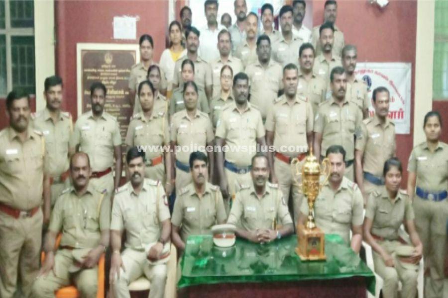 திண்டுக்கல் :  திண்டுக்கல் நகர் தாலுகா காவல் நிலையம் மாநில அளவில் சிறந்த காவல் நிலையங்களில் 3-ம் இடம் பிடித்தது. அதனை தொடர்ந்து குடியரசு தின விழாவில் சிறந்த காவல் நிலையத்திற்கான சான்றிதழை தமிழக முதல்வர் திரு.ஸ்டாலின், தாலுகா காவல் நிலைய ஆய்வாளர் திரு. பாலாண்டியிடம் வழங்கினார். இதையடுத்து திண்டுக்கல் தாலுகா காவல் நிலைய ஆய்வாளர் பாலாண்டி திண்டுக்கல் மாவட்ட காவல் கண்காணிப்பாளர் திரு.பாஸ்கரன், அவர்களை சந்தித்து வாழ்த்து பெற்றார். அதனைத் தொடர்ந்து தாலுகா காவல் நிலையத்தில் ஆய்வாளர் பாலாண்டி, சார்பு ஆய்வாளர்கள் விஜய்,மலைச்சாமி, ஜெய்கணேஷ்,சிறப்பு சார்பு ஆய்வாளர்கள், மற்றும் காவல்துறையினர் அனைவரும் மகிழ்ச்சியுடன் குழு புகைப்படங்கள் எடுத்துக் கொண்டனர்.