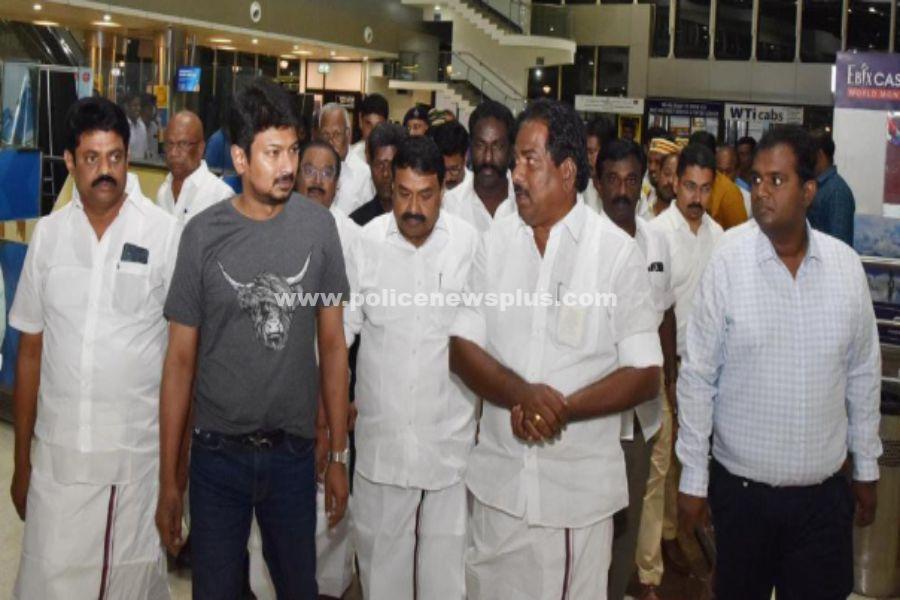 மதுரை : மதுரைக்கு வருகை தந்த தமிழக இளைஞர் நலம் மற்றும் விளையாட்டு துறை அமைச்சர் உதயநிதியை, அமைச்சர்கள் ராஜ கண்ணப்பன், பி. மூர்த்தி,
