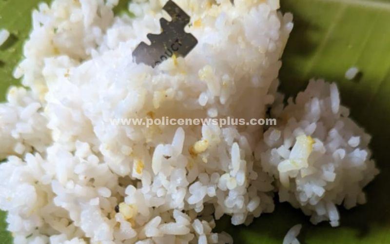 சாப்பாடு பார்சலை பிரித்து பார்த்த போது, வெள்ளை சாதத்தில் பாதி உடைந்த பிளேடு துண்டு ஒன்று கிடப்பதை கண்டு அதிர்ச்சி அடைந்துள்ளார். இதனைத்தொடர்ந்து, சம்பந்தப்பட்ட உணவகத்திற்கு நேரில் சென்று கடையில் வேலை பார்த்த ஊழியர் ஞானம் என்பவரிடம் கேட்ட போது அவர் வாக்குவாதம் செய்ததாக கூறப்படுகிறது. இந்நிலையில், முகமது உணவுப் பாதுகாப்புத்துறைக்கு கொடுத்த புகாரின் பேரில், உணவு பாதுகாப்புத்துறை அதிகாரிகள் முகமது மனைவி ஆர்டர் செய்த உணவை சோதனை செய்ததோடு, உணவகத்தில் சோதனை மேற்கொண்டனர். அப்போது, வெள்ளை சாதம் எதுவும் அங்கு வைக்கப்படாமல் இருந்துள்ளது. மேலும், பணியாளர்களிடம் மருத்துவசான்று, தலையுறை அணியாமல் உணவுகளை சமைத்து வந்தது தெரிய வந்தது. இதனைத் தொடர்ந்து, வாடிக்கையாளரிடம் தவறு இருந்தால் திருத்திக்கொள்வதாக கடிதம் ஒன்றையும் உணவகம் எழுதிக்கொடுத்துள்ளது. மேலும், உணவுப்
