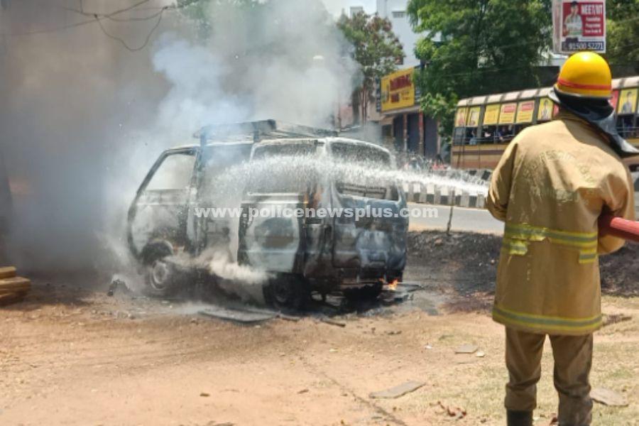 மதுரை : மதுரை மாவட்டம், திருப்பரங்குன்றம் சாலை மூலக்கரை அருகே மதுரை கப்பலூரிலிருந்து டைல்ஸ் வாங்கிக்கொண்டு மதுரை சிந்தாமணியை சேர்ந்த சோமசுந்தரம் என்பவர், மதுரை நோக்கி வந்து கொண்டிருந்தார். அப்பொழுது, திருப்பரங்குன்றம் சாலை மூலக்கரை ரவுண்டானா அருகே வரும் பொழுது, காரில் புகை வந்ததை கண்டு சுதாரித்துக் கொண்ட சோமசுந்தரம், உடனடியாக சாலையில் ஓரமாக வாகனத்தை நிறுத்தி வாகனத்தில் இருந்தவர்களும் உடனடியாக கீழே இறங்கினார். கண்ணிமைக்கும் நேரத்தில் வாகனம் திடீரென மலமளவென எளிய தொடங்கியது. இதை பார்த்த பொதுமக்கள் திருப்பரங்குன்றம் தீயணைப்பு நிலையத்திற்கு தகவல் கொடுத்தனர். சம்பவ இடத்துக்கு விரைந்த தீயணைப்பு நிலைய அலுவலர் உதயகுமார் தலைமையிலான தீயணைப்பு மற்றும் பேரிடர் மீட்பு வீரர்கள் சுமார் அரை மணி நேரம் போராடி தீயை அணைத்தனர். எனினும், கார் முற்றிலும் எரிந்து சேதமானது . முதற்கட்ட விசாரணையில், சுமார் 10 ஆண்டு பழமையான கார் எனவும், இது கேஸ் லீக் ஆனதால் இந்த தீ விபத்து ஏற்பட்டதாக தெரிய வருகிறது. உரிய நேரத்தில் சுதாரித்துக் கொண்டு இறங்கியதால், அவர்கள் காயம் என்று உயிர் தப்பினர். சம்பவம் குறித்து, திருப்பரங்குன்றம் போலீசார் வழக்குப் பதிவு செய்து விசாரணை மேற்கொண்டு வருகின்றனர். இதனால், திருப்பரங்குன்றம் சாலையில் சுமார் அரை மணி நேரம் போக்குவரத்து பாதிப்பு ஏற்பட்டது. எனினும், திருப்பரங்குன்றம் போக்குவரத்து ஆய்வாளர் பூர்ண கிருஷ்ணன் போக்குவரத்தை சீர் செய்து போக்குவரத்து பாதிக்காத அளவிற்கு துரித நடவடிக்கை எடுத்தார்கள். இதனால், திருப்பரங்குன்றம் சாலையில் சிறிது நேரம் பரபரப்பு ஏற்பட்டது.