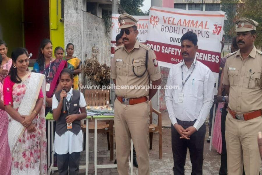 திண்டுக்கல் : திண்டுக்கல் மாவட்டம், நகர் வடக்கு காவல் நிலைய எல்லைக்குட்பட்ட பகுதியில் இன்று (24.01.2023) சாலை பாதுகாப்பு வார விழாவை முன்னிட்டு மாணவ, மாணவிகளின் விழிப்புணர்வு பேரணியை திண்டுக்கல் மாவட்ட காவல் கண்காணிப்பாளர் திரு.V.பாஸ்கரன், அவர்கள் கொடியசைத்து துவக்கி வைத்தார்கள்.