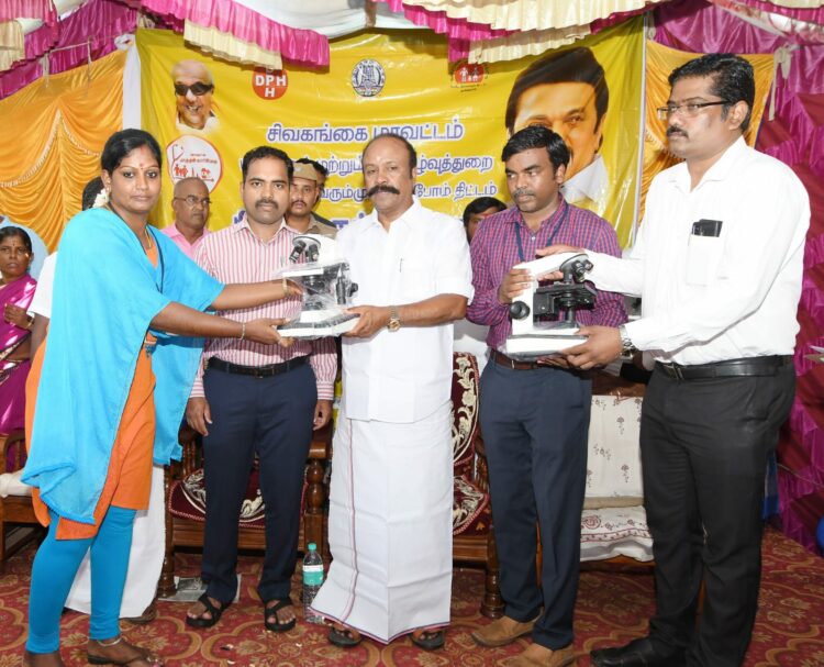 மேலும், மாநிலம் முழுவதும் நடத்தப்பட்ட காசநோய் கணக்கெடுப்பில் தீவிர காசநோய் தடுப்பு நடவடிக்கைகள் மேற்கொள்ளப்பட்டு, காசநோய் தொற்று விகிதம் குறைந்துள்ளதாக தமிழகத்தில் 8 மாவட்டங்கள் அடையாளம் காணப்பட்டுள்ளன. அதில் ஒன்றான சிவகங்கை மாவட்டத்தில் காசநோய் பிரிவு சிறப்பான பணிகளை மேற்கொண்டதன் அடிப்படையில், தமிழக அரசால் வழங்கப்பட்ட ரூ.2.00 இலட்சம் பரிசுத்தொகையும் பெற்றுள்ளது. அத்தொகயைக் கொண்டு மொத்தம் 7 இருகண் நுண்ணோக்கிகள் பெறப்பட்டு, அதனை சிங்கம்புணரி, திருப்பத்தூர், திருப்புவனம், மானாமதுரை ஆகிய அரசு மருத்துவ மனைகளுக்கும் மற்றும் காளையார்மங்கலம், கண்ணங்குடி, எஸ்.புதூர் ஆகிய அரசு ஆரம்ப சுகாதார நிலையங்களுக்கும் காசநோய் கண்டறிதலை மேம்படுத்தும் வகையில், இக்கருவி இன்றையதினம் வழங்கப்படுகிறது.