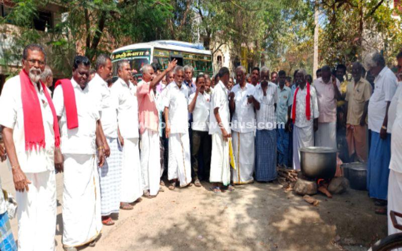 விருதுநகர் : விருதுநகர் மாவட்டம், இராஜபாளையம் அருகே உள்ள தளவாய்புரம் பகுதியில், விசைத்தறியில் சேலை உற்பத்தி செய்யும் தொழிலில் ஆயிரத்துக்கும் மேற்பட்ட தொழிலாளர்கள் ஈடுபட்டு வருகின்றனர் 400க்கு மேற்பட்ட விசைத்தறி கூடங்கள் செயல் பட்டு வருகிறது இவர்களுக்கு கடந்த 2018 முதல் 2021 ஆம் ஆண்டு வரை ஒப்பந்தம் போடப்பட்டு அதன் அடிப்படையில் கூலி (சம்பளம்) வழங்கப்பட்டுள்ளது. இந்த நிலையில், 2021 2023 ஆண்டுக்கு கூலி ஒப்பந்தம் செய்வதற்கு முதலாளிகள் முன்வராத காரணத்தினாலும் தங்களுக்கு சம்பளத்தில் 75% உயர்த்தி தர வேண்டும் போனஸ் 20% சதவீதம் உயர்த்தி தரவேண்டும் என கோரிக்கை வலியுறுத்தி கடந்த 9 நாட்களாக வேலை நிறுத்த போராட்டத்தில் ஈடுபட்டு வருகின்றனர். போராட்டத்தில் பல்வேறு கட்டங்களில் பேச்சுவார்த்தை நடத்தும் பேச்சுவார்த்தை தோல்வி அடைந்த நிலையில், போராட்டம் உச்சக் கட்டத்தை அடைந்தது. ஏ.ஜ.டி.மயு. வட்டாரத்தலைவர் அய்யனார், சி.ஜ.டி.யு.சி வட்டாரத் தலைவர் ராசு தலைமையில் செட்டியார்பட்டி கிராமநிர்வாக அலுவலர் அலுவலகம் முன்பு இன்று கஞ்சி திட்டி திறந்து போராட்டத்தை வலுப்பெற செய்தனர். ஈரோடு இடைத் தேர்தலில் கவனம் செலுத்தி வரும் முதலமைச்சர் மு.க.ஸ்டாலின் உயிரோடு பட்டினியால் வாடிவதங்கி கொண்டிருக்கும் தளவாய்புரம் விசைத்தறி தொழிலாளர்கள் பிரச்சனையில் கவனம் செலுத்தி முடிவுக்கு கொண்டுவர வேண்டும் என, விசைதறி தொழிலாளர்கள் முதலமைச்சருக்கு வேண்டுகோள் விடுத்துள்ளனர்.
