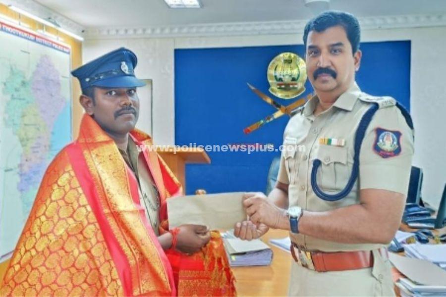 இதனையடுத்து மேற்படி இறந்த மூதாட்டியின் உடலை சம்பவ இடத்தில் போக்குவரத்து வசதியின்மை காரணமாக சாலைக்கு கொண்டு வர முடியாததையடுத்து காவலர் காளிமுத்து என்பவர் 1.5 கிலோமீட்டர் தூரம் வயல்வெளி பாதையில் தனது தோளில் சுமந்து சென்று இறந்த மூதாட்டியின் உடலை சாலைக்கு கொண்டுவந்தார். இதனையடுத்து காவலர் காளிமுத்துவை அப்பகுதி மக்கள் வெகுவாக பாராட்டினர். மேற்படி காவலர் காளிமுத்துவின் மனித நேய செயலை பாராட்டி மாவட்ட காவல் கண்காணிப்பாளர் டாக்டர் திரு.எல். பாலாஜி சரவணன், அவர்கள் இன்று 13.01.2023 அவருக்கு மாவட்ட காவல்துறை அலுவலகத்தில் வைத்து பொன்னாடை அணிவித்து வெகுமதி வழங்கி பாராட்டினார்.