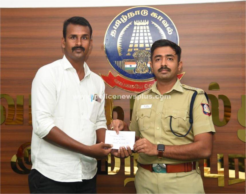 இராமநாதபுரம்: இராமநாதபுரம் மாவட்டம் திருவாடானை உட்கோட்டம் ஆர்எஸ் மங்கலம் காவல் நிலைய தனிப்பிரிவு தலைமை நிலை காவலர் கலைவாணன் அவர்களுக்கு இராமநாதபுரம் மாவட்ட காவல் கண்காணிப்பாளர் G. சந்தீஷ் இகாப அவர்கள் ஆர்எஸ் மங்கலம் காவல் நிலையத்தில் சிறப்பாக பணியாற்றியதற்காக கௌரவப்படுத்தி பரிசளித்தார்.