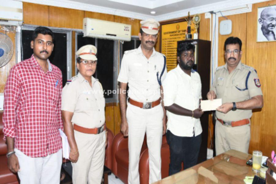 சிவகங்கை : சிவகங்கை மாவட்டம், காரைக்குடி சேர்ந்த ராமமூர்த்தி வயது (24) என்பவரின் தொலைபேசி 9791553358 எண்ணிற்கு +63 9368673830 எண்ணிற்கு வாட்ஸ் அப் மூலம் குறுஞ்செய்தி அமேசான் மிஷன் ஹால் என்ற வெப்சைட்டில் பணம் முதலீடு செய்தால் பணம் இரட்டிப்பாக கிடைக்கும் என அனுப்பப்பட்டிருந்தது. இதனை நம்பி வாதியின் பேட்டி 97915 53358 லிருந்து குறுஞ்செய்தியில் இருந்த லிங்கில் உள் நுழைந்து விவரங்களை பதிவேற்றம் செய்து அதில் உள்ள பொருட்களை பெற்றுக் கொடுத்தால் லாபம் கிடைக்கும் என்று இருந்ததை நம்பி 16 தவணையாக ரூபாய். 82,400/- பெற்றுக்கொண்டு ஏமாற்றிய நபரை கண்டுபிடித்து நடவடிக்கை எடுக்க வேண்டும் கொடுத்த புகாரின் பேரில் சைபர் கிரைம் காவல் நிலைய வழக்கு பதிவு செய்யப்பட்டு நடவடிக்கை மேற்கொள்ளப்பட்டு இழந்த தொகையை ரூபாய் 82,400 மீட்க்கப்பட்டு ப ராமமூர்த்தியிடம் ஒப்படைக்கப்பட்டது. இதனை பாராட்டி சிவகங்கை மாவட்ட காவல் கண்காணிப்பாளர் உயர்திரு.எஸ். செல்வராஜ் அவர்கள், கூடுதல் காவல் கண்காணிப்பாளர் திரு.நமச்சிவாயம் அவர்கள்/சைபர் கிரைம் அவர்கள் மற்றும் ஆய்வாளர் திருமதி. தேவி அவர்கள், உள்ளிட்ட சைபர் கிரைம் குழுவினரை வெகுமதி அளித்து பாராட்டினார்.
