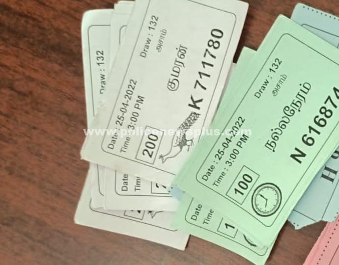 திண்டுக்கல் :  திண்டுக்கல் S.P. திரு. சீனிவாசன்,  அவர்களுக்குகிடைத்த ரகசிய தகவலின்படி  நத்தம் ஆய்வாளர் ராஜமுரளி,  தனிப்பிரிவு  காவலர் கார்த்திக்,  மற்றும் காவலர்கள் செந்துறை, பகுதியில் நடத்திய தீவிர சோதனையில் அரசால் தடை செய்யப்பட்ட லாட்டரி  சீட்டுகளை விற்பனை செய்த  திருச்சியை சேர்ந்த கருமலையான் (55), என்பவரை கைது செய்தனர். மேலும் அவரிடமிருந்து லாட்டரி  சீட்டுகள், மற்றும் ரூ.2000 பணம் ஆகியவற்றை பறிமுதல் செய்தனர்.