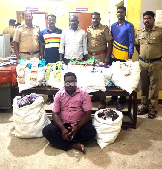 இராணிப்பேட்டை: இராணிப்பேட்டை மாவட்ட காவல் கண்காணிப்பாளர் செல்வி கிரண் ஸ்ருதி அவர்களின் உத்தரவின் படியும் அரக்கோணம் உட்கோட்ட துணை காவல் கண்காணிப்பாளர் வெங்கடேசன் அவர்கள் அறிவுரையின்படி அரக்கோணம் நகர காவல் ஆய்வாளர் தங்குகுருநாதன் அவர்களுக்கு கிடைத்த ரகசிய தகவலின் படி காவல் ஆய்வாளர் மற்றும் உதவியாளர்கள் நாராயணசாமி சிரஞ்சீவிலு ஆகியோர் தலைமையிலான போலீசார் அரக்கோணம் அடுத்த வெங்கடேசபுரம் கிராமத்தில் பாபு என்பவரது வீட்டின் பின்புறம் சோதனை செய்ததில் அரசால் தடை செய்யப்பட்ட சுமார் 52,000 ரூபாய் மதிப்புள்ள52. 5KG குட்கா மற்றும் புகையிலை பொருட்கள் பறிமுதல் செய்யப்பட்டு குற்றவாளி பாபு (வ/38). த/பெ செல்லதுரை எண்.609/ 335 பிள்ளையார் கோவில் வெங்கடேசபுரம் அரக்கோணம் தாலுகா இராணிப்பேட்டை மாவட்டம் என்பவரை கைது செய்து நீதிமன்ற காவலுக்கு அனுப்பி வைக்கப்பட்டார்.