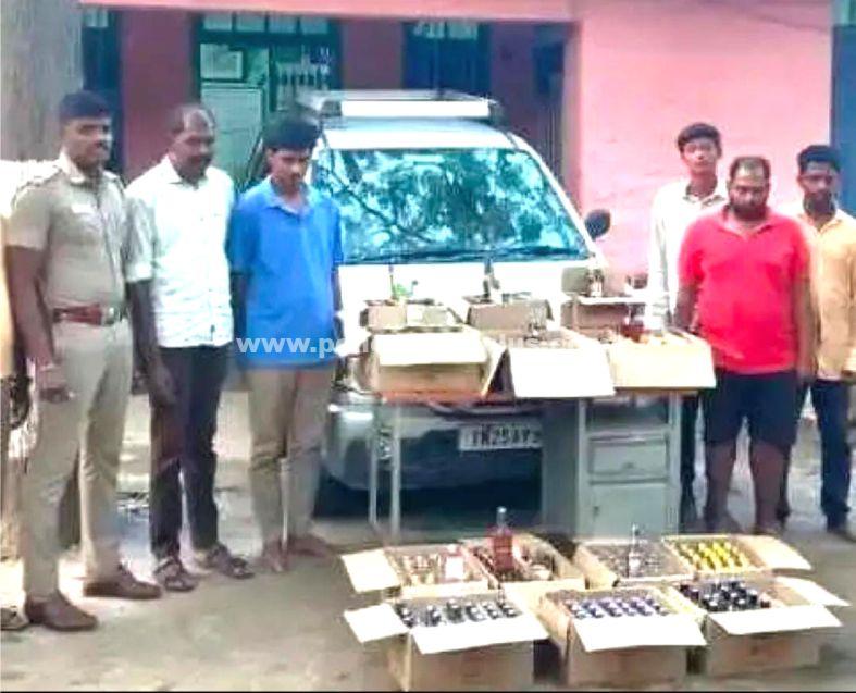 கிருஷ்ணகிரி: கிருஷ்ணகிரி மாவட்டம் தேன்கனிக்கோட்டை அருகே டாஸ்மாக் கடையில் மதுபாட்டில்களை திருடி சென்று ஆன்லைனில் விற்பனை செய்த 5 பேரை போலீசார் கைது செய்தனர். கடையின் சுவற்றில் துளையிட்டு மதுபானங்களை மர்ம நபர்கள் திருடி சென்றனர். இது குறித்து விசாரணை மேற்கொண்ட தேன்கனிக்கோட்டை போலீசார், அப்பகுதியில் பதிவான சிசிடிவி காட்சிகளை ஆய்வு செய்து, சாப்ரானப்பள் சேர்ந்த சபரி (25). தீனா (24). ஹரிஸ்(33). நாகராஜ்(24), ஆகியோரை கைது செய்தனர்.