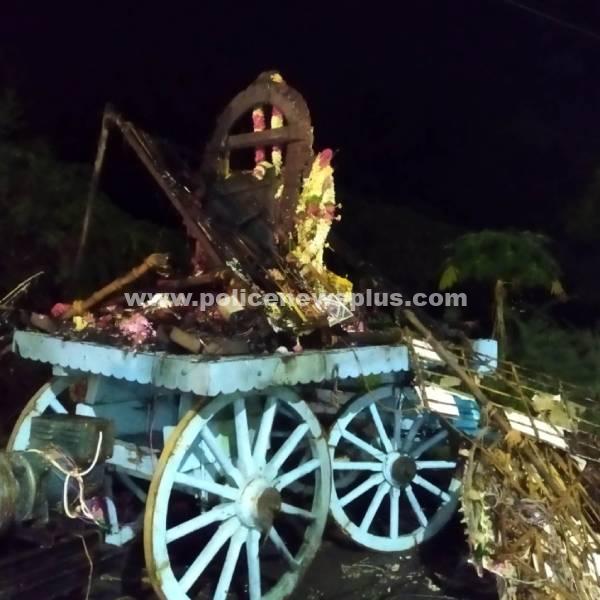 விபத்து நடந்தது எப்படி? விபத்தை நேரில் பார்த்த அசோகன் (62) கூறுகையில், ‘‘தேர் நள்ளிரவு 12 மணியளவில் ஊர் மக்களால் இழுத்து வரப்பட்டது. அதிகாலை 3.30 மணியளவில் தெற்கு தெருவில் உள்ள வளைவில் திரும்பியது. தேரின் இடது புற சக்கரம் சாலையில் இருந்து கீழே இறங்கியது. அப்போது, தேரின் மேல் உள்ள அலங்கார பகுதி உயர்மின் அழுத்த கம்பியில் உரசியது. இதைத் தொடர்ந்து, தேரில் தீப்பற்றியது. இதையடுத்து தேரில் இருந்தவர்கள் பல அடி தூரத்துக்கு தூக்கி வீசப்பட்டனர். மின் கம்பி செல்லும் இடங்களில் தேரின் மேற்பகுதியில் உள்ள அலங்கார பகுதியை பெரிய கம்பு மூலம் வளைப்பது வழக்கம். அதிகாலை நேரம் என்பதால், கம்பு மூலம் வளைப்பதை மறந்து விட்டதாக தெரிகிறது. இதனாலேயே உயரழுத்த மின்கம்பி மீது தேரின் அலங்கார பகுதி உரசியது,’’ என்றார்