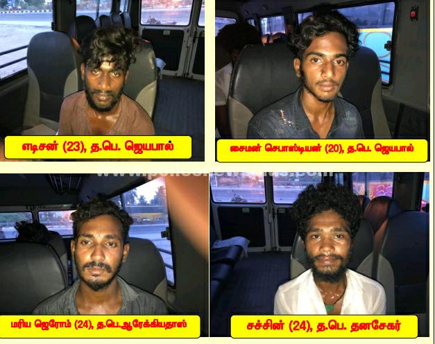 திண்டுக்கல் : திண்டுக்கல் புகையிலைப்பட்டி ஜல்லிக்கட்டு போட்டியில் சாணார்பட்டி எஸ்.பி தனிப்பிரிவு காவலர் மோகனை தாக்கிய முத்தழகுபட்டியை சேர்ந்த மரிய செரோம்(24), எடிசன்(23), சைமன் செபாஸ்டியன்(20), ரிச்சர்ட் சச்சின்(24) ஆகிய 4 பேரை எஸ்.பி சீனிவாசன் உத்தரவின் பேரில் சாணார்பட்டி போலீசார் கைது செய்து விசாரணை நடத்தி வருகின்றனர்.