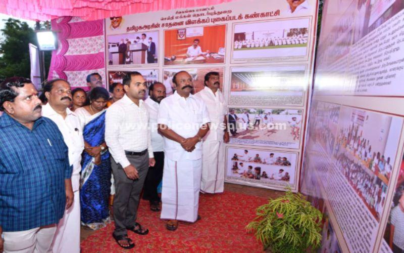 மேலும், இன்றையதினம் பல்வேறு துறைகளின் சார்பில், அரசின் நலத்திட்ட உதவிகளை பயனாளிகளுக்கு வழங்கும் நிகழ்வு சிறப்பாக நடைபெற்று வருகிறது. அந்நிகழ்ச்சிகளுக்கு, வருகை தரும் பயனாளிகள் மற்றும் பொதுமக்கள் அனைவரும் இக்கண்காட்சியினை, பார்த்து பயன்பெறும் வகையில், இக்கண்காட்சி சிறப்பாக அமைக்கப்பட்டுள்ளது. இப்புகைப்படக் கண்காட்சியில், தமிழக அரசால் செயல்படுத்தப்பட்டு வரும் பல்வேறு சிறப்பு திட்டங்கள் மற்றும் தமிழ்நாடு முதலமைச்சர், பொதுமக்களுக்கு வழங்கப்பட்டு வரும் பல்வேறு நலத்திட்ட உதவிகள், அதன் பயன்கள் உள்ளிட்டவைகள் தொடர்பாக, பல்வேறு புகைப்படங்கள் இக்கண்காட்சியில் இடம் பெற்றுள்ளன. சிவகங்கை மாவட்ட மக்கள் இதனை முழுமையாக பயன்படுத்திக் கொண்டு, அரசின் பல்வேறு திட்டங்கள் குறித்தும், அதனை பெறுவதற்கான வழிமுறைகள் குறித்தும் அறிந்து கொண்டு பயன்பெற வேண்டும் என, கூட்டுறவுத்துறை அமைச்சர் கேஆர்.பெரியகருப்பன் தெரிவித்தார். இந்நிகழ்ச்சியில், மாவட்ட வருவாய் அலுவலர் ப.மணிவண்ணன், மாவட்ட ஆட்சியரின் நேர்முக உதவியாளர் ம.ரா.கண்ணகி, திருப்புவனம் பேரூராட்சித்தலைவர் சேங்கைமாறன், ஊராட்சி ஒன்றியக்குழுத் தலைவர்கள் மஞ்சுளா பாலசந்தர் (சிவகங்கை), லதா அண்ணாத்துரை (மானாமதுரை), சிவகங்கை நகர்மன்றத்தலைவர் சி.எம்.துரைஆனந்த், நகர்மன்றத துணைத்தலைவர் கார்கண்ணன், மாவட்ட ஊராட்சி உறுப்பினர் பா.செந்தில்குமார், சிவகங்கை மாவட்ட செய்தி மக்கள் தொடர்பு அலுவலர் இரா.சண்முகசுந்தரம் மற்றும் அரசு அலுவலர்கள் உட்பட பலர் கலந்து கொண்டனர்.