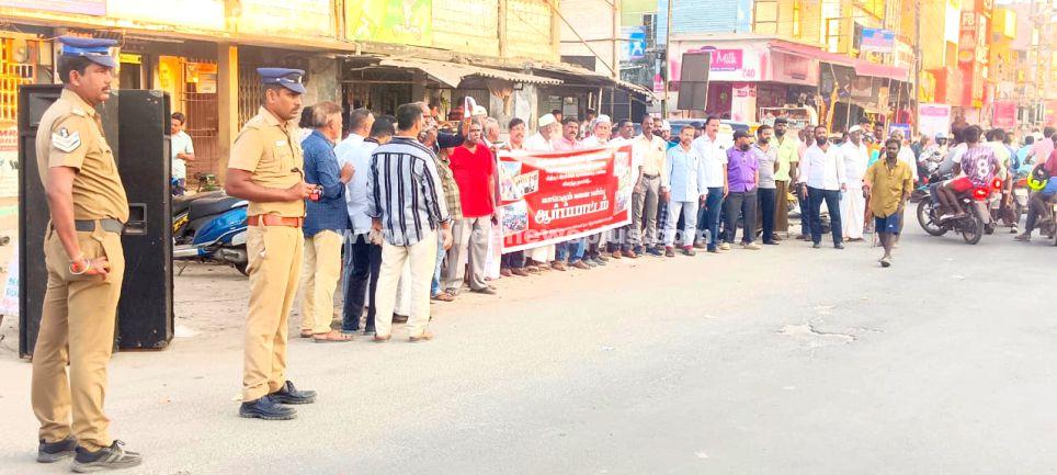 மேலும் போக்குவரத்து நெரிசலுக்கு தீர்வு காணும் வகையில் ரயில்வே சுரங்கப்பாதை பணிகளை விரைந்து முடித்திட வேண்டும் எனவும் வலியுறுத்தி முழக்கங்களை எழுப்பினர். விரைவில் சுரங்க பணிகளை தொடங்காவிடில் அடுத்தடுத்த போராட்டங்களில் ஈடுபடுவோம் என அப்போது எச்சரித்தனர். இதில் இந்திய கம்யுனிஸ்ட் மார்க்சிய கம்யுனிஸ்ட் இந்திய தேசிய காங்கிரஸ் விடுதலைச்சிறுத்தைகள் கட்சி தமிழ்நாடு முஸ்லிம் முன்னேற்ற கழகம் அனைத்து இறைச்சி வியாபாரிகள் சங்கம் மனித நேய ஜனநாயக கட்சி மற்றும் சமூக ஆர்வலர்கள் பொதுமக்கள் உள்ளிட்ட கலர் திரளாக கலந்து கொண்டனர்.