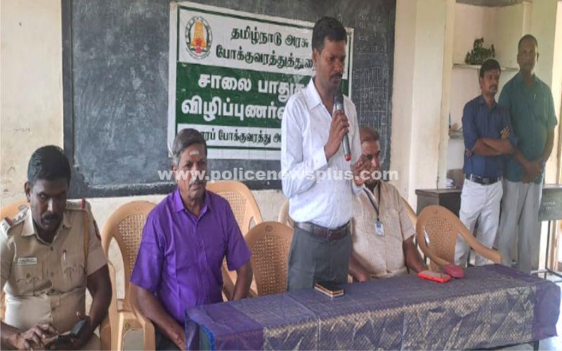 விழிப்புணர்வு கருத்தரங்கில் போக்குவரத்து அலுவலர் குமரவேல் பேசும்போது, பள்ளி மாணவர்களாக இருந்தாலும் சரி, வேறு யாராக இருந்தாலும் சரி ஓட்டுனர் உரிமம் இல்லாமல் வாகனங்களை ஓட்டக் கூடாது. இருசக்கர வாகனங்களில் செல்பவர்கள் கண்டிப்பாக தலைகவசம் அணிய வேண்டும். பேருந்துகளில் பயணம் செய்யும் பள்ளி மாணவர்கள் பேருந்துகளின் படிக்கட்டுகளில் தொங்கிக் கொண்டு பயணம் செய்வதை முற்றிலும் தவிர்க்க வேண்டும். மேலும், இருசக்கர வாகனங்களை ஓட்டிச் செல்லும் போது மிதமான வேகத்தில் மட்டுமே செல்ல வேண்டும். இருசக்கர வாகனங்களில் இரண்டு நபர்களுக்கு மேல் செல்லக் கூடாது. சாலை விதிகளை கட்டாயம் கடைப்பிடிக்க வேண்டும். சாலை விதிகளை மதிப்போம் என்று மாணவர்கள் அனைவரும் உறுதிமொழி எடுத்துக்கொண்டு அதன்படி இருக்க வேண்டும் என்று பேசினார். பள்ளி முதுகலை ஆசிரியர் மலைக்கனி நன்றி கூறினார்.
