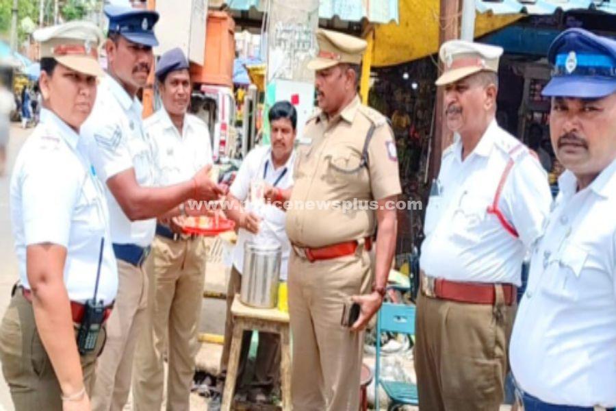 அரியலூர் : அரியலூர் மாவட்டத்தில் வெயிலில் நின்று போக்குவரத்தை ஒழுங்குபடுத்தும் போக்குவரத்து காவல் துறையினர் வெயிலின் தாக்கத்தில் இருந்து மீள்வதற்காகவும், நல்ல முறையில் சோர்வின்றி பணியாற்றுவதற்காகவும் போக்குவரத்து காவல்துறையினருக்கு நீர்மோர், பழச்சாறு, இளநீர் வழங்குமாறு அரியலூர் மாவட்ட காவல் கண்காணிப்பாளர் திரு.K.பெரோஸ் கான் அப்துல்லா அவர்கள் உத்தரவிட்டார்கள். அதன்படி (25.03.2023) ஜெயங்கொண்டம் நகரில் ஜெயங்கொண்ட உட்கோட்ட துணை காவல் கண்காணிப்பாளர் திரு.ராஜாசோமசுந்தரம் அவர்கள் ஜெயங்கொண்டம் போக்குவரத்து காவல்துறையினருக்கு பழச்சாறு வழங்கினார்கள். உடன் ஜெயங்கொண்டம் போக்குவரத்து காவல் ஆய்வாளர் திருமதி.சகீரா பானு அவர்கள். அரியலூர் நகரில் அரியலூர் உட்கோட்ட துணை காவல் கண்காணிப்பாளர் திரு.சங்கர் கணேஷ் அவர்கள், போக்குவரத்து ஆய்வாளர் திரு.கார்த்திகேயன் அவர்கள் வழிகாட்டுதலின்படி போக்குவரத்து காவல் உதவி ஆய்வாளர் திரு.உலகநாதன் அவர்கள் போக்குவரத்து காவலர்களுக்கு இளநீர் வழங்கினார்கள். அரியலூர் மற்றும் ஜெயங்கொண்டம் நகர போக்குவரத்து பணியில் ஈடுபட்டுள்ள காவலர்களுக்கு தினந்தோறும் 4 முறை லெமன் ஜீஸ், மோர், இளநீர் உள்ளிட்ட குளிர்பானங்கள் வெயில் காலம் 3 மாதங்களுக்கு அரசின் சார்பில் வழங்கப்படும். காவல்துறையினர் வெயிலின் தாக்கம் இன்றி நல்ல உடல் நலத்துடன் பணிபுரியும் நோக்கில் வழங்கப்பட உள்ளது.