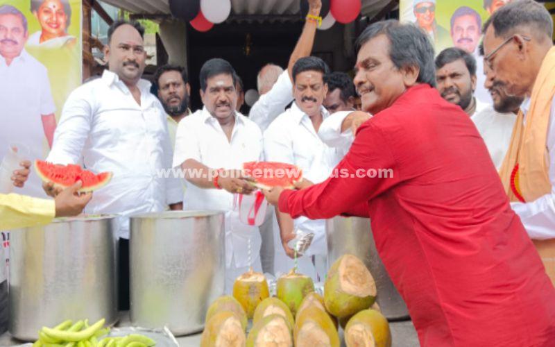 திருவள்ளூர் : திருவள்ளூர் மாவட்டம், மீஞ்சூர் பேரூர் அ.தி.மு.க சார்பில் நகர செயலாளர் பட்டாபிராமன் ஏற்பாட்டில் மீஞ்சூர் பஜாரில் தண்ணீர் பந்தலை திருவள்ளூர் வடக்கு மாவட்ட கழக செயலாளரும் பொன்னேரி முன்னாள் சட்டமன்ற உறுப்பினருமான சிறுணியம் பலராமன் கலந்து கொண்டு நீர் மோர் பந்தலை திறந்து வைத்து பொது மக்களுக்கு இளநீர், மோர், தர்பூசனி, கூழ் உள்ளிட்டவற்றை வழங்கினார். இந்நிகழ்ச்சியில் மீஞ்சூர் ஒன்றிய செயலாளர் முத்துக்குமார், நகர துணை செயலாளர் தமிழரசன் அவைத்தலைவர் மாரி , மீஞ்சூர் பேரூராட்சி 18 வது வார்டு கவுன்சிலர் ராஜன் மற்றும் மீஞ்சூர் பேரூர் கழக நிர்வாகிகள் பலர் கலந்து கொண்டனர்.