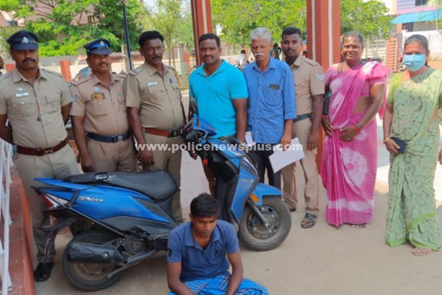 இரண்டு நாள் அவர் வீட்டில் இருந்த ஐயப்பன் அவர் உறங்கிக் கொண்டிருக்கும் பொழுது கடந்த மார்ச் -27 அன்று அவருக்கு தெரியாமல் அங்கிருந்த ஸ்கூட்டர் ,பணம் மற்றும் மொபைல் ஆகியவற்றை திருடி சென்று விட்டார் இது சம்பந்தமாக அய்யம்பேட்டை காவல் நிலையத்தில் புகார் கொடுக்கப் பட்டதை தொடர்ந்து பாபநாசம் காவல்துறை கண்காணிப்பாளர் திருமதி. பூரணி அவர்களின் மேற்பார்வையில் காவல் ஆய்வாளர் திருமதி . வனிதா மற்றும் அய்யம்பேட்டை காவல் உதவி ஆய்வாளர் திரு ராஜேஷ்குமார் மற்றும் முதல் நிலைகாவலர் சௌந்தர், ஆகியோர் தீவிர விசாரணை மேற்கொண்டு வந்த நிலையில் இன்று (மார்ச் 30 ) ஐயப்பன் ஊரான மதகரம் அருகில் உள்ள கிராமத்தில் ஒளிந்திருப்பதாக போலீசாருக்கு கிடைத்த ரகசிய தகவலின் அடிப்படையில் போலீசார் அங்கு விரைந்து சென்று ஐயப்பனை கைது செய்தார்கள் மேலும் அவர் வைத்திருந்த ஒரு ஸ்கூட்டர், ஒரு செல்போன் , ஐயாயிரம் ரூபாய் ரொக்கம் முதலியவற்றை கைப்பற்றி நீதிமன்றத்தில் ஒப்படைத்து அதன் பின் சிறையில் அடைத்தார்கள்.