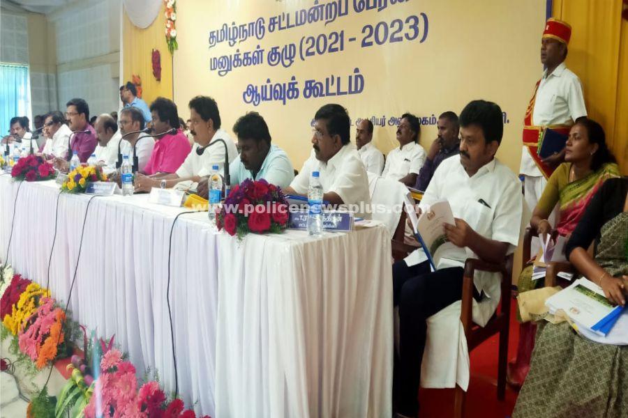 சட்டமன்ற மனுக்கள் குழுவின் ஆய்வுகூட்டத்தில் தலைமை முனைவர் கோவி செழியன் தலைமையில், காரைக்குடி சட்டமன்ற உறுப்பினர் எஸ்.மாங்குடி அவர்களும் உறுப்பினர்களுடன், மனுக்கள் மீது எடுக்கப்பட்டுள்ள நடவடிக்கைகள் குறித்து துறை சார்ந்த அதிகாரிகளிடம் கேட்டறிந்தனர்.