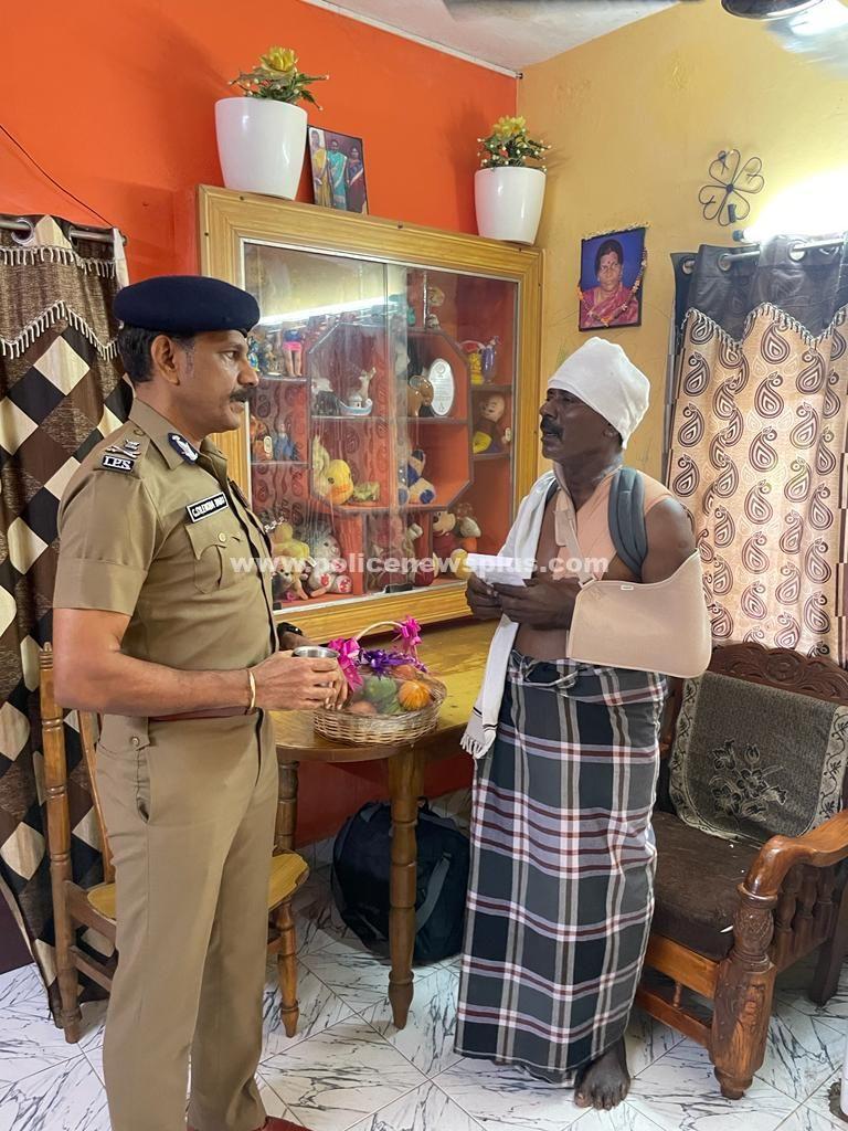 சென்னை: நேற்று சென்னை நந்தம்பாக்கத்தில் வாகன சோதனையின் போது ஆட்டோ மோதி படுகாயமடைந்த காவல் உதவி ஆய்வாளர் திரு. பொன்ராஜை தமிழ்நாடு காவல்துறை தலைமை இயக்குனர் திரு. சைலேந்திரபாபு, இ.கா.ப. அவர்கள் இன்று காலை அவரது இல்லத்திற்கு நேரில் சென்று நலம் விசாரித்து ஆறுதல் கூறினார்கள். மேலும், காயமடைந்த உதவி ஆய்வாளருக்கு தேவையான அனைத்து மருத்துவ உதவியையும் காவல்துறை செய்து தரும் என்று கூறினார்கள்.