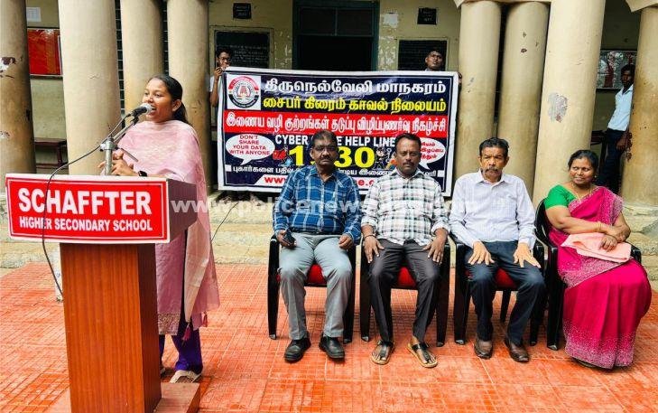 திருநெல்வேலி : திருநெல்வேலி மாநகர காவல் ஆணையர் முனைவர் நெ. மணிவண்ணன், இ.கா.ப. உத்தரவின் படி, காவல் துணை ஆணையர் S.விஜயகுமார் (மேற்கு) மேற்பார்வையில், இணையவழி குற்றங்கள் குறித்து பல்வேறு விழிப்புணர்வு நிகழ்ச்சியில் நடத்தப்பட்டு வரும் நிலையில் (23.02.2026) அன்று திருநெல்வேலி மாநகர சைபர் கிரைம் காவல் உதவி ஆய்வாளர், செல்வி சுவாதிகா மற்றும் சைபர் கிரைம் காவல் துறையினர் டவுண் சாப்டர் பள்ளியில் மாணவ, மாணவர்களிடம், சமூக வலைதளங்களை பாதுகாப்பாக கையாள்வது , ATM கார்டு மற்றும் OTP குறித்தும், சமூக வலைத்தளத்தின் மூலம் அறிமுகம் இல்லாத நபர்கள் தொடர்பு கொண்டால் அவர்களிடம் எச்சரிக்கையாக இருப்பது, சமூக வலைதளம் மூலம் நடைபெற்று வரும் வேலைவாய்ப்பு மோசடி, பண மோசடி நடைபெற்றால் உடனடியாக சைபர் கிரைம் இலவச உதவி எண்:1930 அல்லது https://cybercrime.gov.in/ புகார் அளிக்க வேண்டும் என்று விழிப்புணர்வு ஏற்படுத்தினார்கள்.