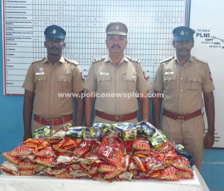 திண்டுக்கல்: திண்டுக்கல் இரயில் நிலையத்திற்கு காலை வந்த மைசூரில் இருந்து தூத்துக்குடி வரை செல்லும் தூத்துக்குடி எக்ஸ்பிரஸ் இரயிலில் திண்டுக்கல் இரயில்வே காவல் நிலைய ஆய்வாளர் தூயமணி வெள்ளைச்சாமி தலைமையில் சார்பு ஆய்வாளர் மணிகண்டன் மற்றும் காவலர்கள் சோதனை மேற்கொண்ட போது முன்பதிவில்லா பெட்டியில் கேட்பாரற்று கிடந்த மூட்டையை சோதனை செய்த போது அதில் 40 கிலோ அரசால் தடை செய்யப்பட்ட குட்கா மற்றும் புகையிலை பொருட்கள் கடத்தி வரப்பட்டது தெரியவந்தது தொடர்ந்து போலீசார் அதனை பறிமுதல் செய்து விசாரணை மேற்கொண்டு வருகின்றனர்.