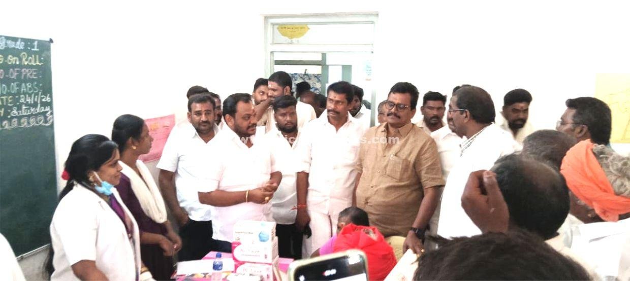 செம்மேட்டுப்பட்டியில், நலம் காக்கும் ஸ்டாலின் திட்டத்தின் கீழ் பல்நோக்கு சிறப்பு மருத்துவ முகாம் நடைபெற்று வருகிறது. இந்த முகாமினை, தேனி நாடாளுமன்ற உறுப்பினர் தங்கதமிழ்ச்செல்வன் நேரில் ஆய்வு செய்து குத்துவிளக்கு ஏற்றி வைத்து முகாமினை துவக்கி வைத்தார். தொடர்ந்து, கர்ப்பிணி தாய்மார்களுக்கும், மாற்றுத்திறனாளிகளுக்கும், நலத்திட்ட உதவிகளை வழங்கினார். உசிலம்பட்டி திமுக ஒன்றிய மற்றும் நகர் கழக நிர்வாகிகளும் உடனிருந்தனர். கர்ப்பிணி தாய்மார்களுக்கான சிறப்பு மருத்துவ பிரிவு, அறுவை சிகிச்சை தொடர்பான ஆலோசனை பிரிவு, எலும்பு மற்றும் நரம்பியல் பிரிவு, இருதய மருத்துவ பிரிவு மற்றும் கண் மருத்துவ பிரிவு உள்ளிட்ட பல்வேறு மருத்துவ பரிசோதனைகளும், சிகிச்சைக்கான ஆலோசனைகளும் வழங்கப்பட்டது. மேலும், மாற்றுத்திறனாளிகளுக்கான பரிசோதனை மற்றும் சான்றிதழ்களும் உடனுக்குடன் வழங்கப்பட்டு வருகிறது.