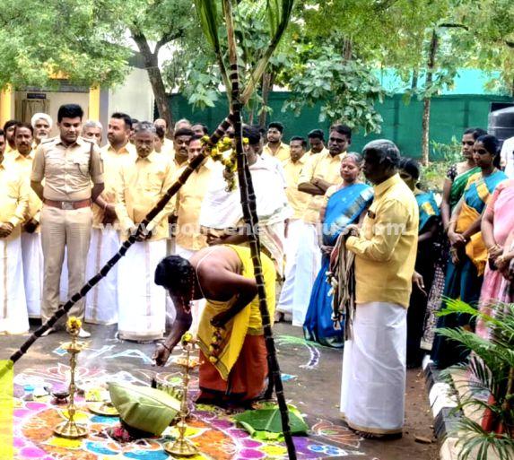 மாவட்ட காவல் கண்காணிப்பாளர் அலுவலக வாயிலில் மாக்கோலமிட்டு, பொங்கல் பானை வைத்து, பொங்கலை பொங்கி, உற்சாகமாகக் கொண்டாடினர். மேலும், பணியாற்றக்கூடிய அனைத்து அதிகாரிகளும், மாவட்ட காவல் கண்காணிப்பாளருக்கு பொங்கல் வாழ்த்துக்களை தெரிவித்தனர்.