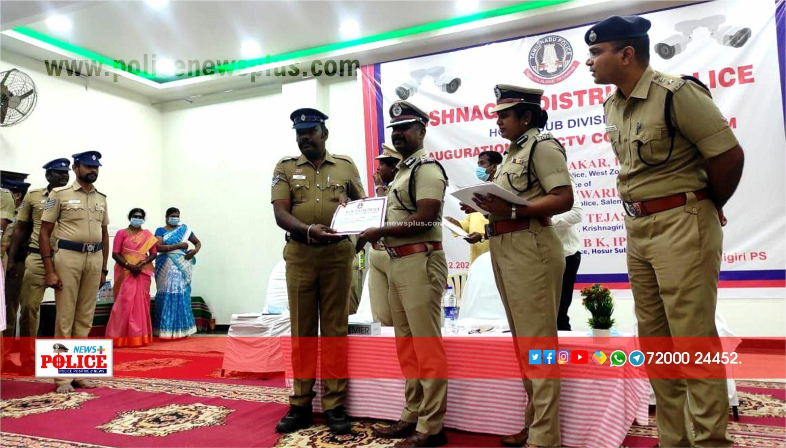 கிருஷ்ணகிரி : ஓசூர் மத்திகிரி பகுதியில் அமைக்கப்பட்ட சிசிடிவி கண்காணிப்பு மையத்தை திறந்து வைத்த பின்னர், தனியார் திருமண மண்டபத்தில் நடைபெற்ற நிகழ்ச்சியில் கலந்து கொண்ட கோவை மேற்கு மண்டல காவல்துறை தலைவர் சுதாகர், கிருஷ்ணகிரி மாவட்டத்தில் பல்வேறு வழக்குகளில் சிறப்பாக பணிபுரிந்த காவல்துறையினர்களுக்கு சான்றிதழ்களை வழங்கி பாராட்டினார். மேலும் ஒசூர் நகர பகுதியில் சிசிடிவி கேமராக்கள் பொருத்த உதவி செய்த தனியார் நிறுவனங்கள் மற்றும் தன்னார்வலர்களுக்கு பாராட்டுக்கள் தெரிவிக்கப்பட்டன.