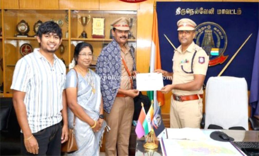 திருநெல்வேலி : திருநெல்வேலி மாவட்ட தனிப்பிரிவில் சிறப்பாக பணிபுரிந்து, பணிமூப்பு அடைந்து ஓய்வு பெறும் உதவி ஆய்வாளர் திரு. தனசிங் சாலமோன் அவர்களை திருநெல்வேலி மாவட்ட காவல் கண்காணிப்பாளர் திரு. நை. சிலம்பரசன் அவர்கள் நேரில் அழைத்து பாராட்டி, பணி நிறைவு வாழ்த்துகளை தெரிவித்தார். இந்நிகழ்வில், திரு. தனசிங் சாலமோன் அவர்கள் பல வருடங்களாகச் சட்டம் மற்றும் ஒழுங்கு பராமரிப்பில் செய்த சிறப்பான சேவை, பொறுப்புணர்வு மற்றும் அர்ப்பணிப்பை முன்னிறுத்தி பாராட்டினர்.