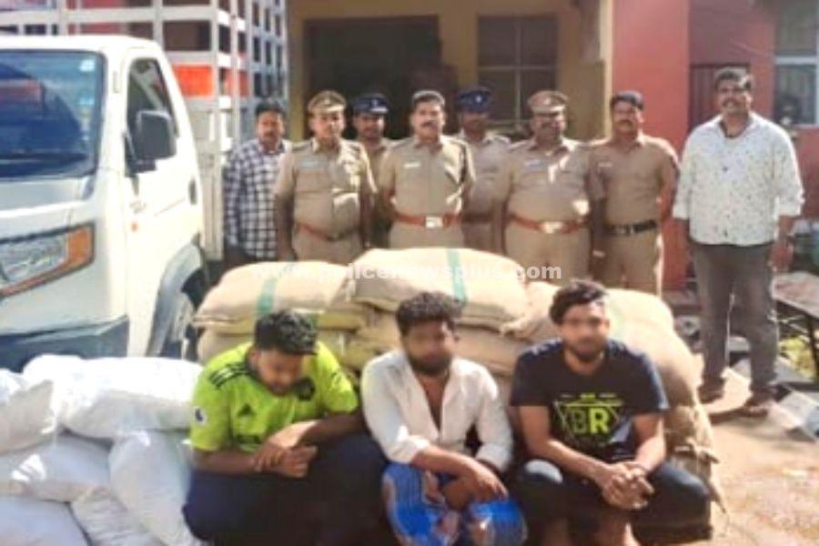 தஞ்சாவூர் : தஞ்சாவூர் மாவட்டம் திருவையாறு உட்கோட்டம் பூதலூர் காவல் பகுதியில் சட்டவிரோதமாக சுமார் 650 கிலோ மதிப்பிலான ஹான்ஸ் மற்றும் போதை தரக்கூடிய பாக்கு பொருட்களை கடத்திச் சென்று மூன்று நபர்களை தஞ்சாவூர் மாவட்ட காவல் கண்காணிப்பாளர் திருமதி.ரவளி ப்ரியா கந்தபுனேனி.இ.கா.ப அவர்களின் உத்தரவின்படி திருவையாறு உட்கோட்ட துணை காவல் கண்காணிப்பாளர் மற்றும் பூதலூர் காவல் நிலைய காவல் ஆய்வாளர் ஆகியோர் தலைமையிலான காவல்துறையினர் கைது செய்து சிறையில் அடைத்தனர்.