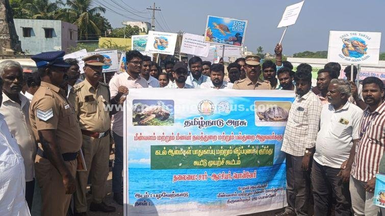 திருவள்ளூர்: திருவள்ளூர் மாவட்டம் பழவேற்காட்டில் கடல் ஆமைகள் உயிரிழப்பை தடுக்கும் வகையில் அதனை பாதுகாக்க வலியுறுத்தி விழிப்புணர்வு பேரணி மற்றும் ஆலோசனைக் கூட்டம் இன்று பழவேற்காட்டில் நடைபெற்றது இதில் கல்லூரி மாணவர்கள் அரசு அலுவலர்கள் கைகளில் பதாகைகளை ஏந்தி முக்கிய வீதிகள் வழியாக பேரணியாக சென்று பொதுமக்கள் மற்றும் மீனவர்களிடையே கடற்கரையை தூய்மையாக வைத்துக் கொள்ளவும் பிளாஸ்டிக்கை தவிர்க்கவும் கடல் ஆமைகளை பாதுகாக்கவும் விழிப்புணர்வை ஏற்படுத்தினர் இதில் பொன்னேரி சாராட்சியர் வாகே சங்கேத் பல்வந்த் மற்றும் காவல் அதிகாரிகள், மீன்வளத்துறை அதிகாரிகள் உடன் இருந்தனர்.