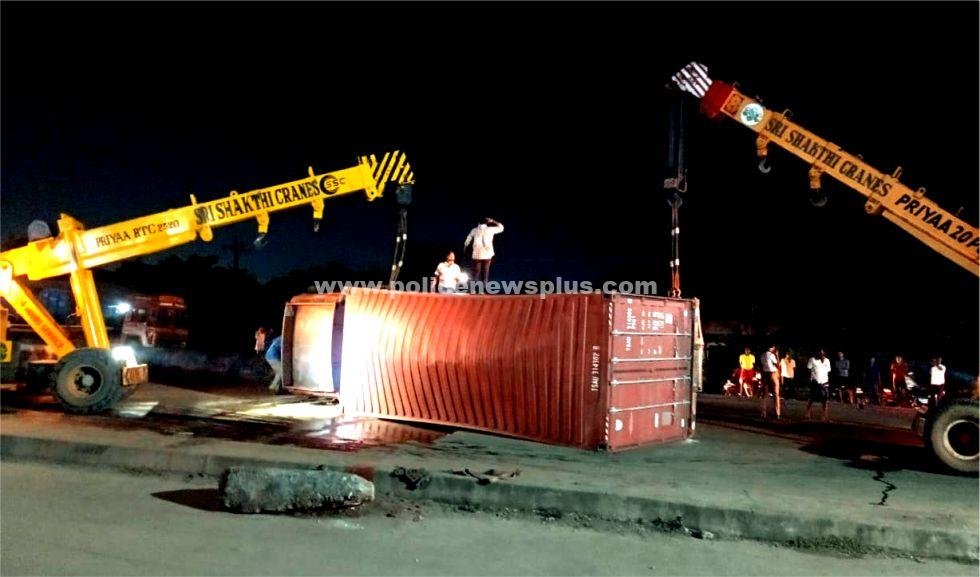 திருவள்ளுர் : காட்டுப்பள்ளி துறைமுகத்தில் பொருட்களை ஏற்றிக்கொண்டு சென்னை நோக்கி சென்று கொண்டிருந்த கண்டெய்னர் லாரி திருவெற்றியூர் நெடுஞ்சாலையில் வெள்ளி வாயில் சாவடி பகுதியில் தலை குப்புற கவிழ்ந்து விழுந்ததில் அதிர்ஷ்டவசமாக ஓட்டுநர் கிளீனர் உயிர்த்தப்பினர். தலைகீழாக புரண்டு விழுந்த கண்டெய்னர் லாரியினால் திருவெற்றியூர் நெடுஞ்சாலையில் போக்குவரத்து நெரிசல் ஏற்பட்டுள்ளது வாகன ஓட்டிகள் சிரமப்பட்டு வருகின்றனர்.