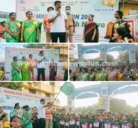 தூத்துக்குடி: தூத்துக்குடி ஏ.பி.சி மகாலெட்சுமி கல்லூரி சார்பாக இன்று (09.04.2022) பள்ளி மற்றும் கல்லூரி மாணவியர்களுக்கு நடைபெற்ற மாநில அளவிலான மினி மாராத்தான் போட்டியில் சுமார் 1000 மாணவியர்கள் கலந்து கொண்டு ஏ.பி.சி மகாலட்சுமி கல்லூரியிலிருந்து புறப்பட்டு தூத்துக்குடி ஸ்டேட் பேங்க் காலனி, கருத்தபாலம், புதிய பேருந்து நிலையம், சிட்டி டவர் ஜங்கசன் வழியாக வந்து மீண்டும் ஏ.பி.சி மகாலெட்சுமி கல்லூரியில் நிறைவு செய்தனர். இந்த மினி மாராத்தான் போட்டியை மாவட்ட காவல் கண்காணிப்பாளர் டாக்டர் திரு. எல். பாலாஜி சரவணன் அவர்கள் கொடி அசைத்து துவக்கிவைத்து ‘காவல் உதவி” செயலி குறித்து விழிப்புணர்வு உரையாற்றினார்.