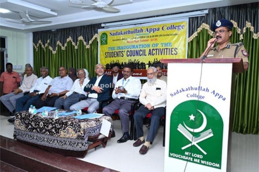 திருநெல்வேலி: திருநெல்வேலி, பாளையங்கோட்டை சதக்கத்துல்லாஹ் அப்பா கல்லூரி மாணவா் பேரவைத் தொடக்க விழா, கல்லூரி கலையரங்கில் நடைபெற்றது. கல்லூரி முதல்வா் சே.மு. அப்துல் காதா் தலைமை வகித்தாா். பேரவை துணைத் தலைவா் ஹமீது சுபியான் வரவேற்றாா். கல்லூரி முதல்வா் தலைமை உரையாற்றினாா். விழாவில் திருநெல்வேலி சரக காவல்துறை துணைத் தலைவா் முனைவர் பா. மூா்த்தி இ.கா.ப., சிறப்பு விருந்தினராகக் கலந்து கொண்டு பேசியதாவது மாணவா் பேரவைத் தோ்தல், மாணவா்களுக்கு முக்கியத்துவம் வாய்ந்தது. மாணவா்கள் அரசியல் அறிவு மிக்கவா்களாக திகழ வேண்டும். இந்த நாடு எப்படி இருக்கிறது, நாட்டின் வரலாறு எப்படி இருக்கிறது, உலக அரசியல் எப்படி இருக்கிறது என்பதை கற்க வேண்டும்.