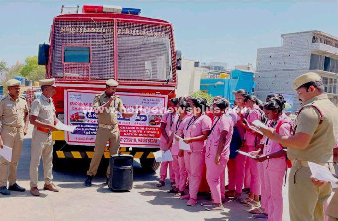 கிருஷ்ணகிரி : தீ தொண்டு நாளை ஒட்டி தேன்கனிக்கோட்டை பேருந்து நிலையத்தில் தீயணைப்பு துறை சார்பில் தீத்தொண்டு நாள் வார விழாவை முன்னிட்டு தீயணைப்பு துறை சார்பில் நர்சிங் கல்லூரி மாணவிகளுக்கு தீத்தடுப்பு குறித்து விழிப்புணர்வு ஏற்படுத்தினர். அதில் பொதுமக்கள் விழிப்புடன் இருந்து தீ விபத்தை தவிர்ப்பது குறித்தும், தீ விபத்து மற்றும் மீட்பு குறித்தும் மக்கள் அவசர தீ கட்டுப்பாட்டு அறை எண் 101, 112 எண்ணை தொடர்பு கொள்ள வேண்டும் என்பதை பொது மக்களுக்கு துண்டு பிரசுரங்களை தீயணைப்பு துறையினர் வழங்கினர்.
