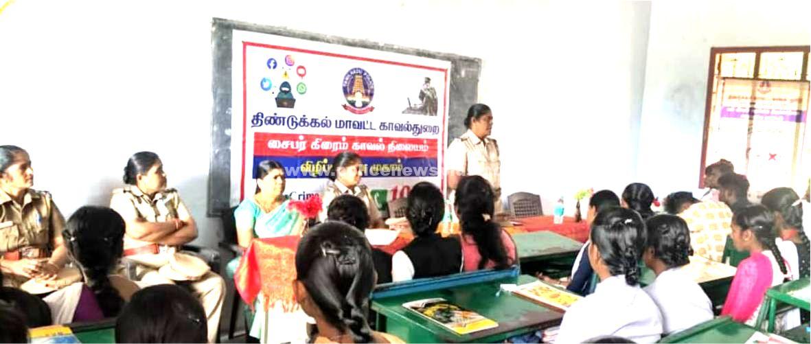 திண்டுக்கல்: திண்டுக்கல் குழந்தைகள் கடத்தல் தடுப்பு பிரிவு ஆய்வாளர் அமுதா மற்றும் சைபர் கிரைம் காவல் ஆய்வாளர் விக்டோரியா லூர்துமேரி மற்றும் காவலர்கள் பொன்னகரம் அருகே ராமபிரபா கலை மற்றும் அறிவியல் கல்லூரியில் மாணவ, மாணவிகளுக்கு சைபர் கிரைம் குற்றங்கள் குறித்தும் குழந்தைகளுக்கு எதிரான குற்றங்கள் பற்றியும், குழந்தைகளின் திருமண வயது பற்றியும், போக்சோ சட்டத்தை பற்றியும், பாலியல் தொந்தரவு மற்றும் இணையவழி குற்றங்கள் பற்றியும் அதற்கு உதவிடும் இலவச தொலைபேசி எண்கள் 1098,181,1930 பற்றியும் விரிவாக எடுத்துரைத்து விழிப்புணர்வு ஏற்படுத்தினர்.