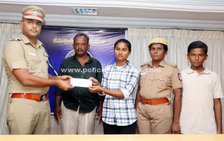 திருநெல்வேலி: திருநெல்வேலியில் 2023-2024 ஆம் கல்வியாண்டில் பத்தாம் வகுப்பு மற்றும் பன்னிரண்டாம் வகுப்பு பொதுத் தேர்வில் வெற்றி பெற்று அதிக மதிப்பெண் பெற்ற காவல்துறையினர் மற்றும் அமைச்சுப்பணியாளர்களின் வாரிசுகளை ஊக்குவிக்கும் வகையில், அரசால் வழங்கப்படும் பரிசுத் தொகையை திருநெல்வேலி மாவட்ட காவல் கண்காணிப்பாளர் திரு. N. சிலம்பரசன் அவர்கள் மாவட்ட காவல் கண்காணிப்பாளர் அலுவலகத்தில் வைத்து வழங்கி பாராட்டி வாழ்த்துகள் தெரிவித்துக்கொண்டார். மேலும் அவர்கள் குறிக்கோள்கள் வெற்றியடைவும், மேற்படிப்பில் நன்கு படித்து உயர்ந்த நிலையை அடைந்து வெற்றி பெறவும், சிறந்த துறையை தேர்ந்தெடுத்து அதில் மென்மேலும் பல சாதனைகள் புரியவும் தனது வாழ்த்துகளை தெரிவித்தார்.